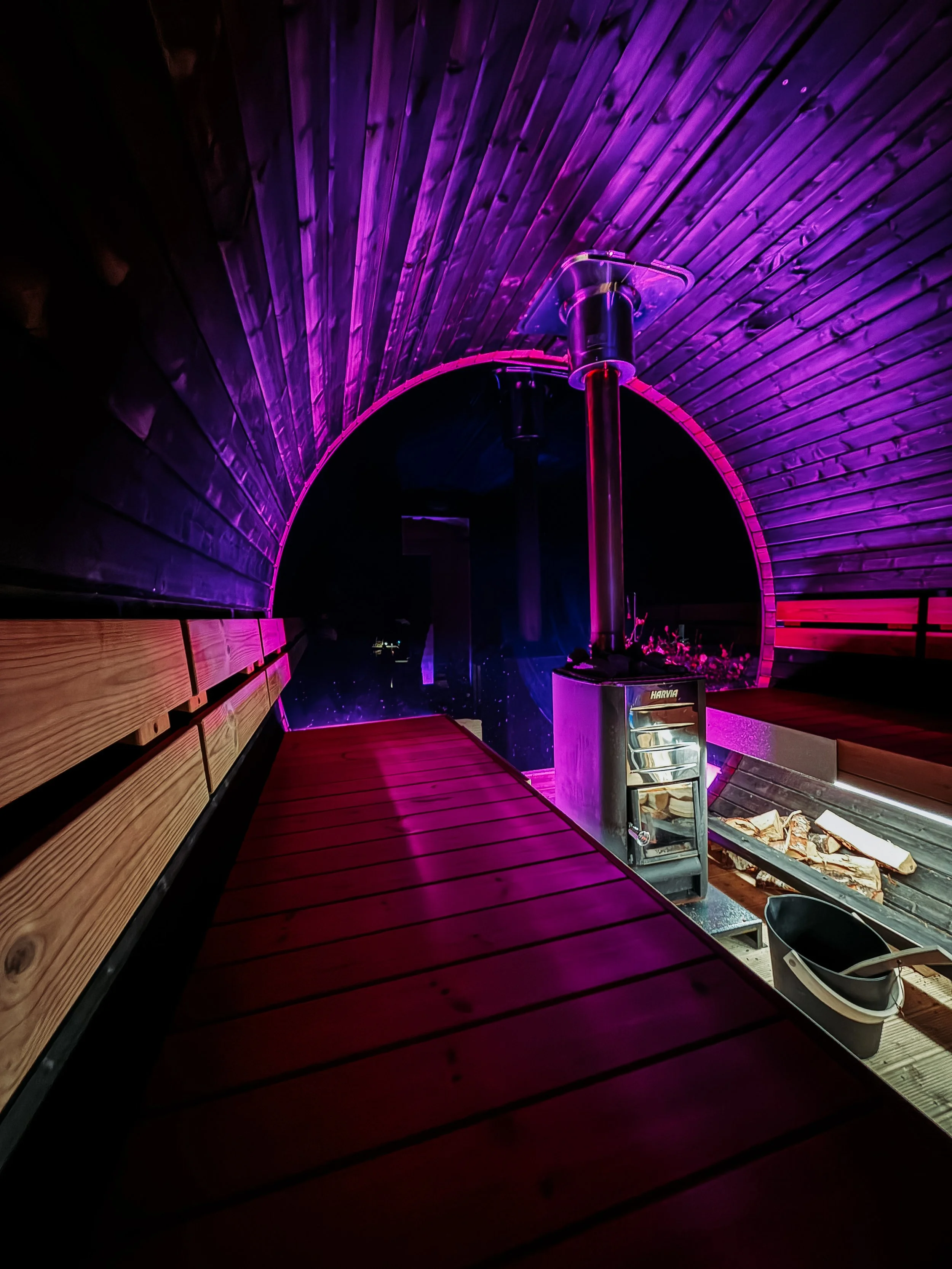 Badstuen er 4 meter lang, har egen garderobe for enkel omkledning og plass til opptil 6 personer. I sommer finner du oss også som en del av miljøet på Herøy Caravan.